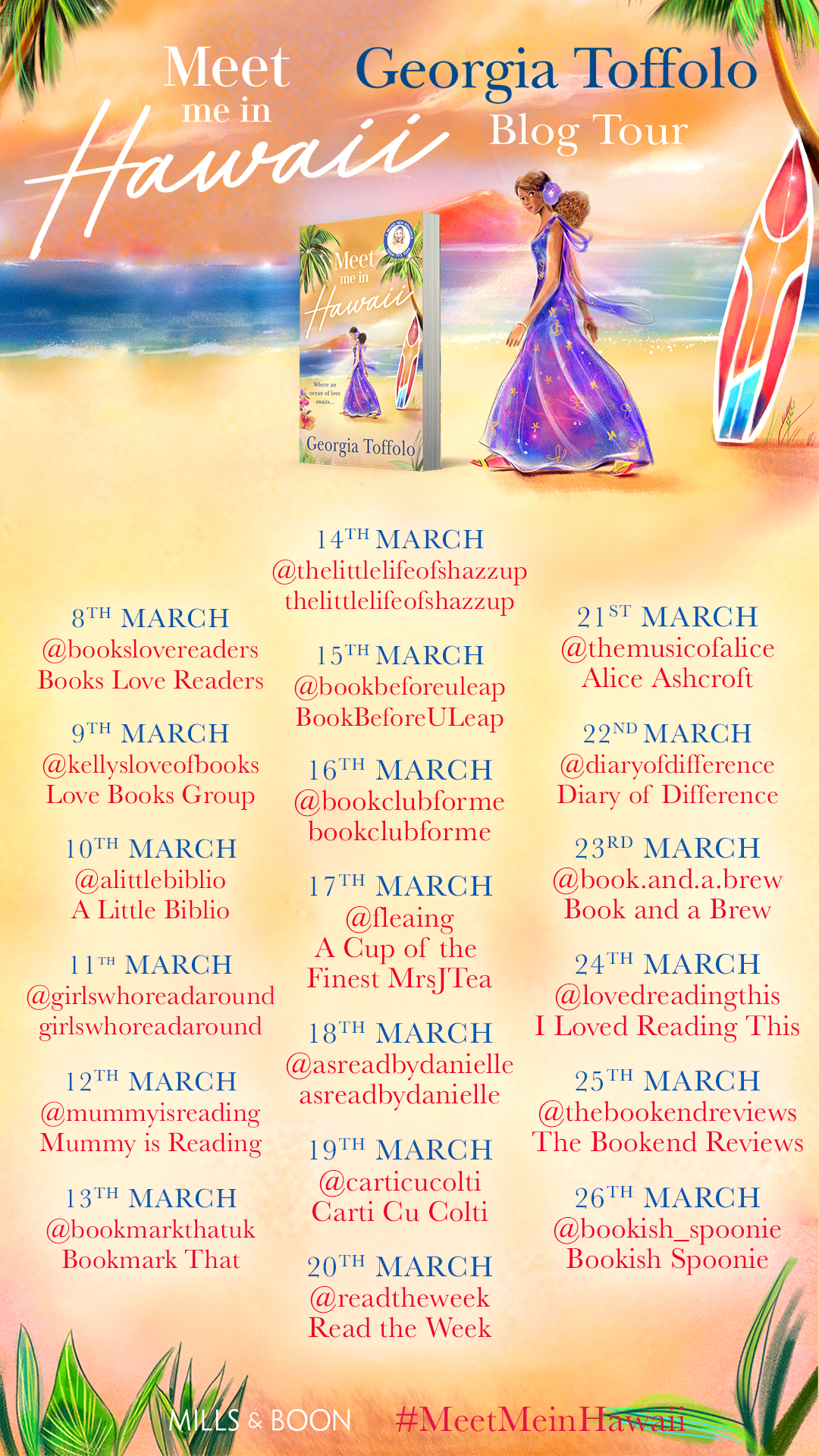 I am so excited to be part of the blog tour for Meet Me in Hawaii by Georgia Toffolo. This is Toff’s second book, and after reading Meet Me in London, I couldn’t wait to read this one as well. If you’re looking for a lovely romance set in a summer destination, this book will be your perfect escape during the pandemic! I feel so honoured to be a Mills & Boon insider, and to have this opportunity!